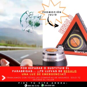 promocion julio-repara o sustituye tu parabrisas y te regalamos una luz de emergencia